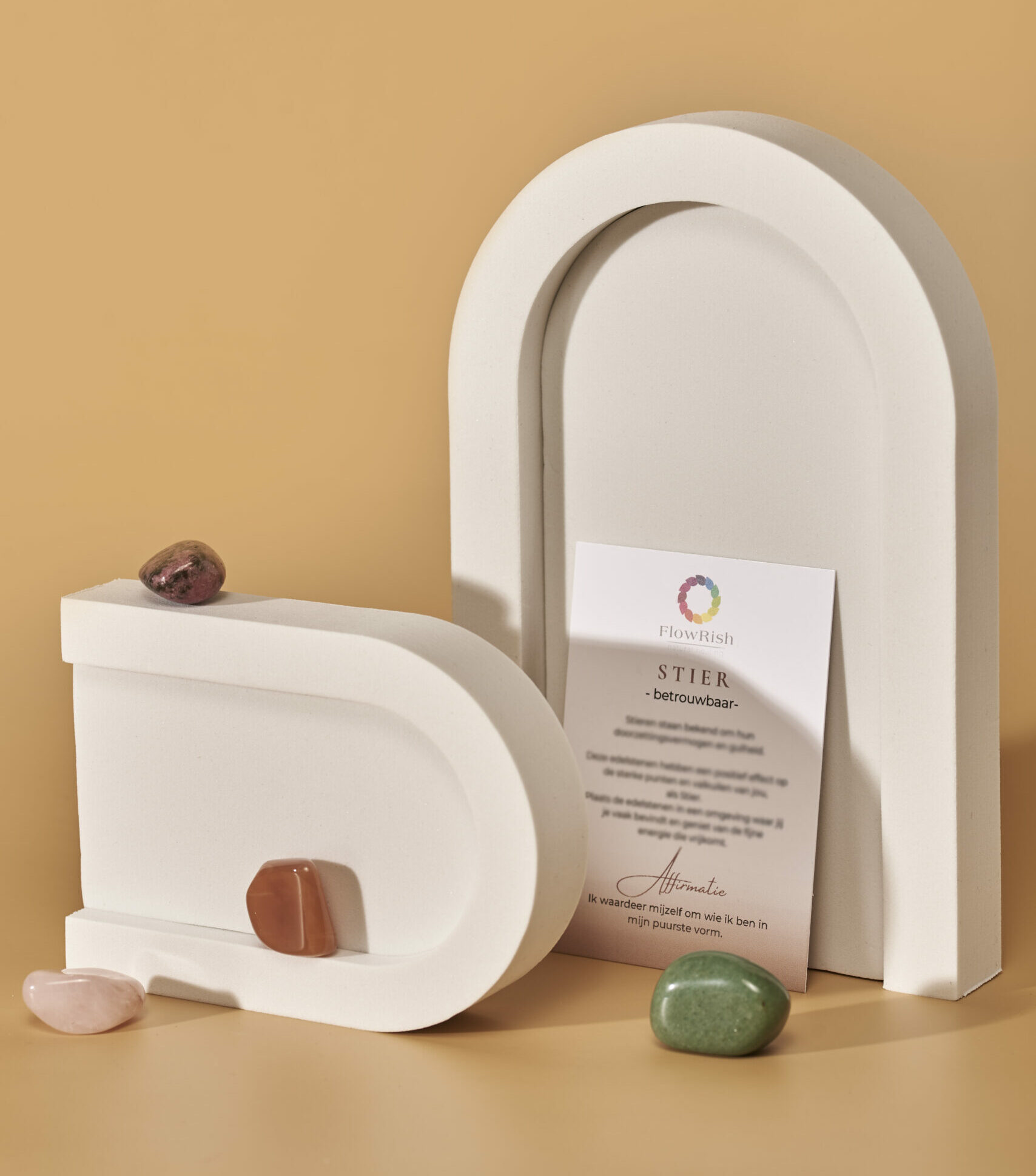 De edelstenen Stier set wordt geleverd in een edelsteenzakje van biologisch katoen. Je ontvangt er daarnaast een informatie- en affirmatiekaartje bij. De stenen hebben ieder een grootte van 2-3,5 cm en dus het ideale formaat om bij je te dragen. Ze zijn met zorg door ons geselecteerd en gereinigd.