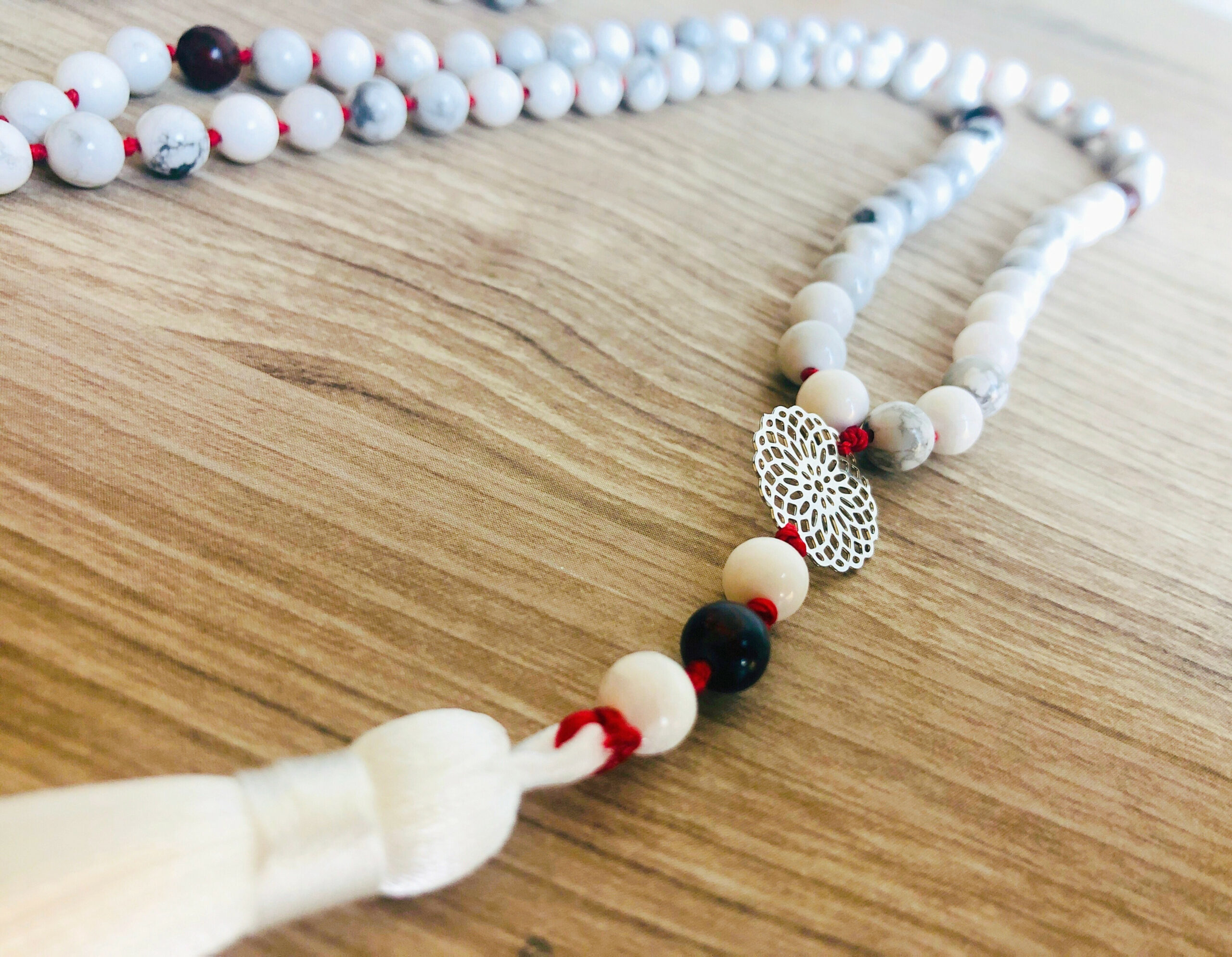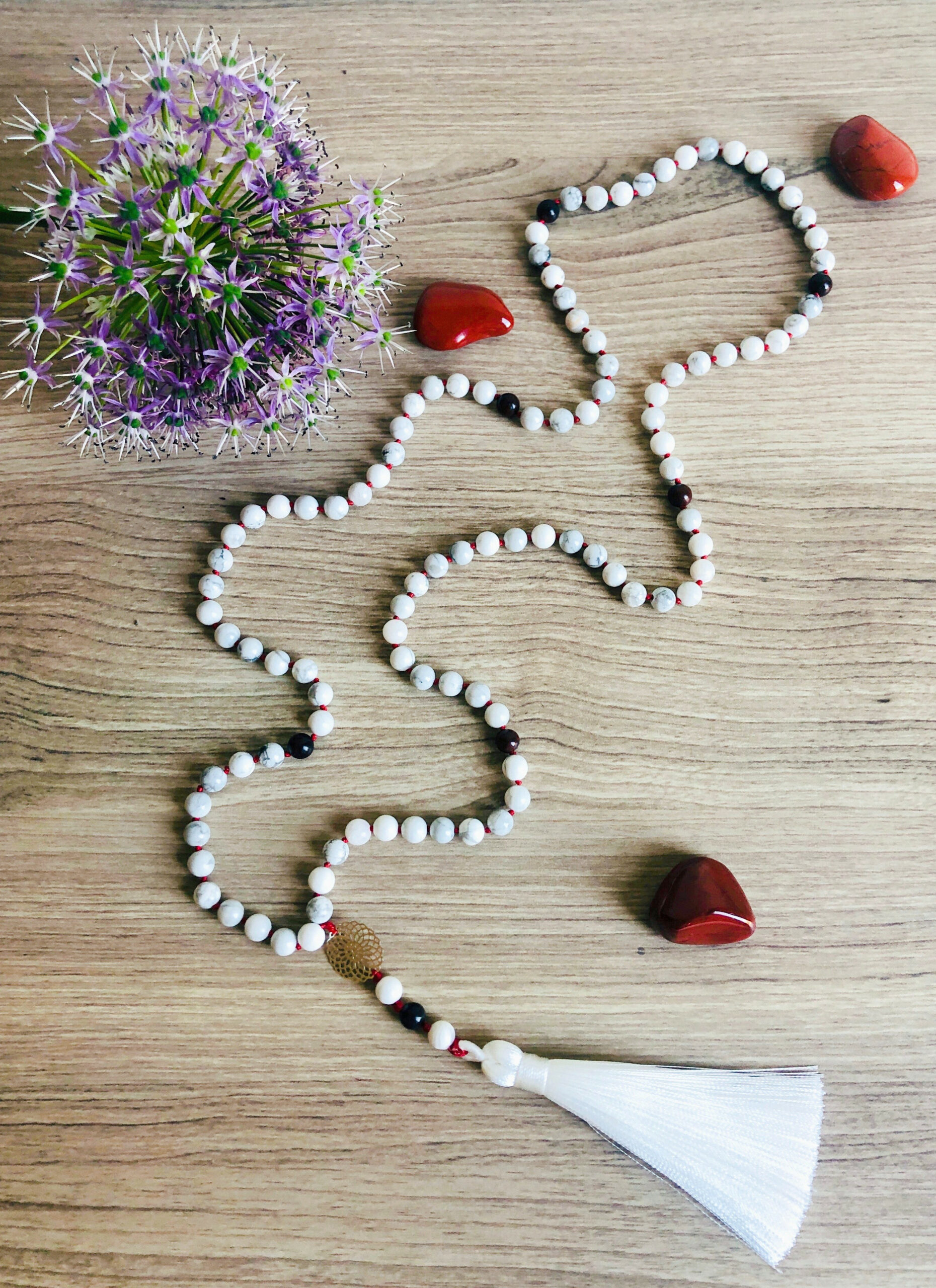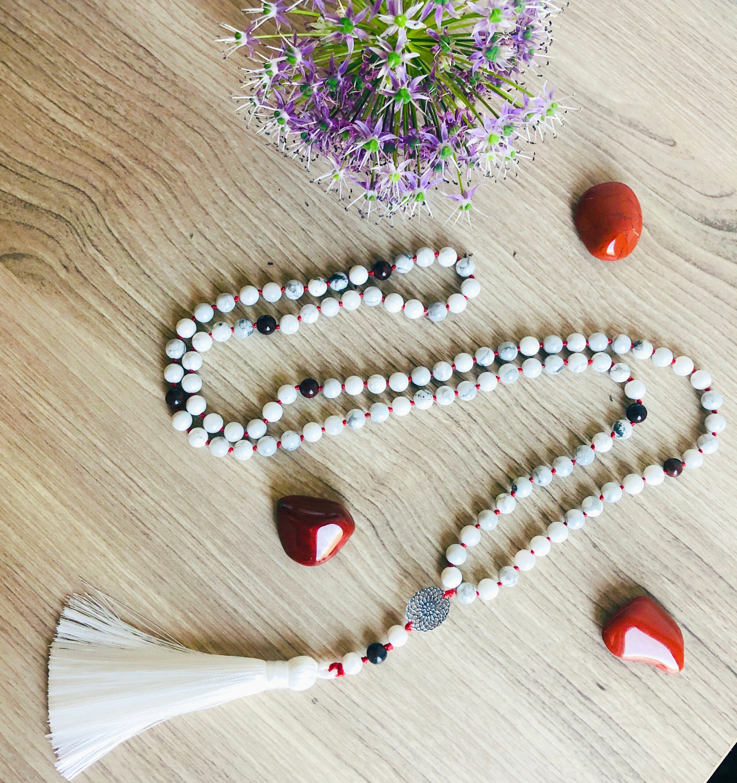 Deze mala van Howliet en Rode Jaspis is ideaal tijdens een gebed of meditatie.